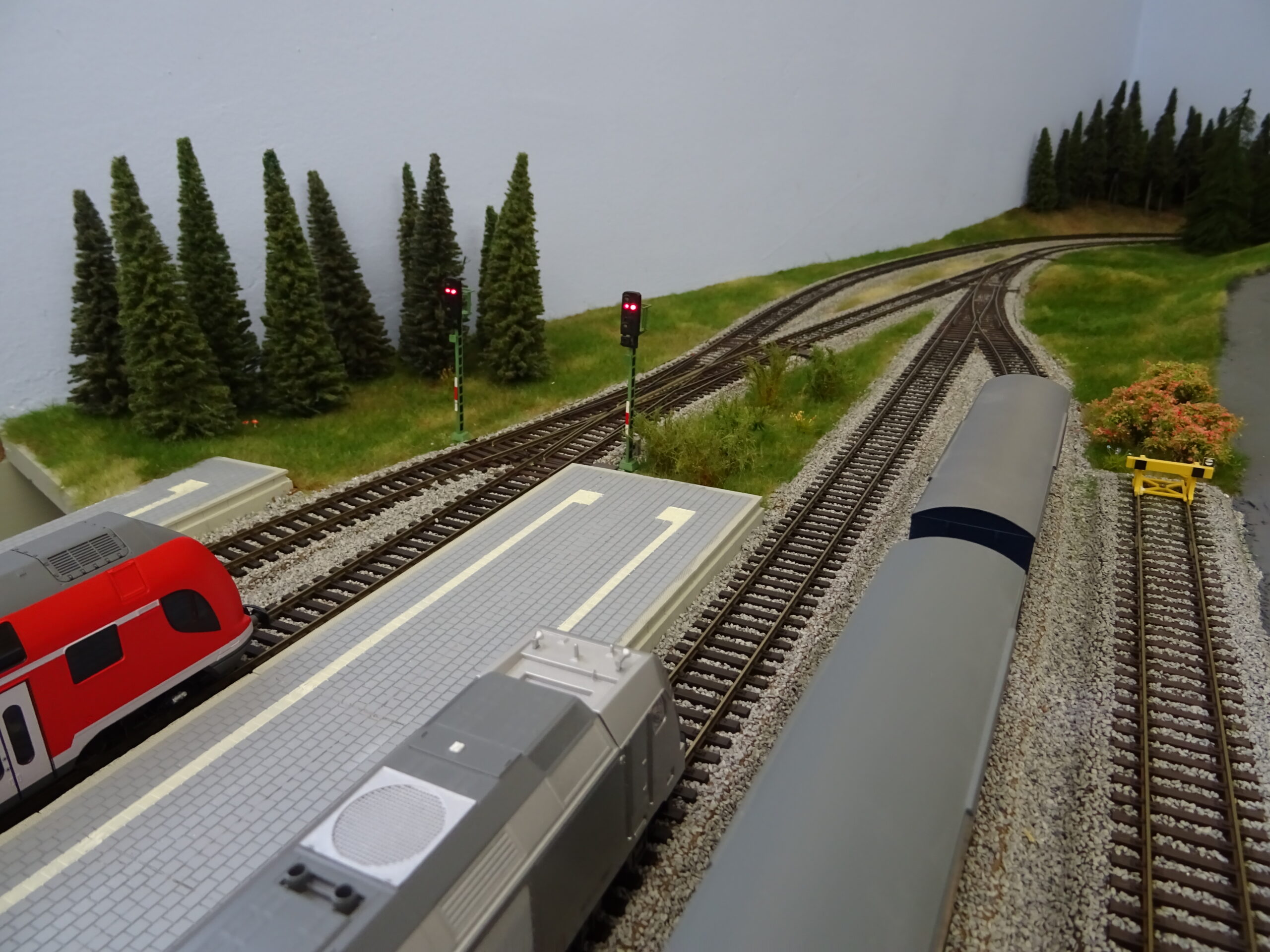 So langsam muss ich an beiden Themen weitermachen. Auch wenn das immer wieder Invest bedeutet… Also hab ich mal ein paar neue Lichtsignale angeschafft. Nun fehlt nicht mehr viel. Um nicht zu viel nutzbare Gleislänge zu verlieren muss auch mal eins nach links.