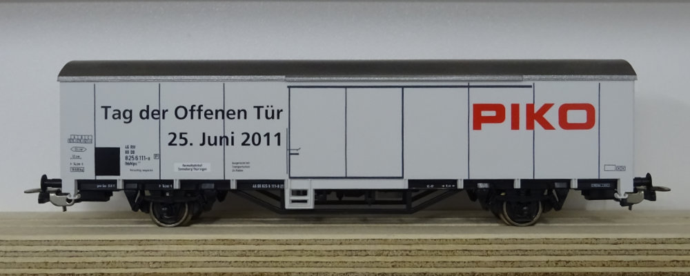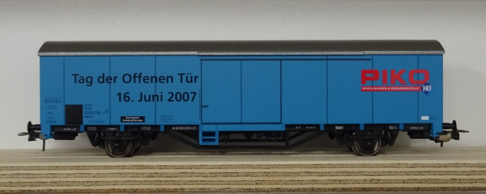Güterwaggons Hier kommen alle im Einsatz befindlichen Güterwaggons. Gedeckter Güterwagen DolePiko 58767Gedeckter Güterwagen HallorenPiko 58710Gedeckter Güterwagen Halloween (2024)Piko 27704Gedeckter Güterwagen HawestaPiko 58781Gedeckter Güterwagen HeichelheimerPiko 58765Gedeckter Güterwagen HitschlerPiko 58764Gedeckter Güterwagen KathiPiko 58729Gedeckter Güterwagen NordwollePiko 27705Gedeckter Güterwagen PfeffiPiko 58745Gedeckter Güterwagen RapidPiko 27707Gedeckter Güterwagen Sun RicePiko 58730Gedeckter Güterwagen WernesgrünerPiko 57798Gedeckter Güterwagen WikanaPiko 58782Gedeckter Güterwagen ZentisPiko 58711Kesselwagen BSAS „Elefant“Sudexpress S783902 (2/3)Kesselwagen BSAS „Panther“Sudexpress S783902 (3/3)Kesselwagen BSAS „Zebra“Sudexpress S783902 (1/3)Kesselwagen GATXPiko 58431Offen Güterwagen AAE CargoTillig 76801Offener Güterwagen Bahnbau, Betriebsnummer 4Piko 98546F4Offener Güterwagen Graffiti 1Piko 58392 (2er Set)Offener Güterwagen Graffiti 2Piko 58392 (2er Set)Offener Güterwagen ITL, Betriebsnummer 1Piko 98546C1Offener Güterwagen ITL, Betriebsnummer 2Piko 98546C2Offener Güterwagen ITL, Betriebsnummer 3Piko 98546C3Offener Güterwagen ITL, Betriebsnummer 4Piko 98546C4Offener Güterwagen mit Holzbeladung, Variante APiko 58235-AOffener Güterwagen mit Holzbeladung, Variante BPiko 58235-BPiko Gedeckter Güterwagen „Flagship Store“Piko 95740Piko Gedeckter Güterwagen „Piko hilft“Piko 72217Piko Jahreswagen 1999 – 50 Jahre PikoPiko 95811Piko Jahreswagen 2008Piko 95847Piko Jahreswagen 2015Piko 95865Piko Jahreswagen 2017Piko 95867Piko Jahreswagen 2018Piko 95868Piko Jahreswagen 2019Piko 95869Piko Jahreswagen 2020Piko 95750Piko Jahreswagen 2021Piko 95751Piko Jahreswagen 2022Piko 95752Piko Jahreswagen 2023Piko 95753Piko Jahreswagen 2024Piko 95754Piko Jahreswagen 2025Piko 95755Piko Tag der offenen Tür 2005Piko 95837Piko Tag der offenen Tür 2007Piko 95844Piko Tag der offenen Tür 2011Piko 95860Piko Tag der offenen Tür 2015Piko 95893Schiebeplanwagen Shimmns, HalloweenPiko 58992